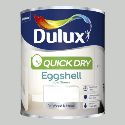 Achieve a modern, low-sheen finish quickly and easily with Dulux Quick Dry Eggshell. This innovative water-based paint is specifically designed for interior wood and metal surfaces, including radiators. Its advanced formula is self-undercoating and features a non-drip consistency, making application smoother and cleaner. Drying to a tough, durable eggshell finish, it's highly wipeable and resistant to yellowing, ensuring your doors, skirting boards, and furniture stay looking fresh and beautiful for longer. With its low odour and quick drying time, it's the perfect choice for busy homes and professional decorators seeking efficiency and a flawless aesthetic.