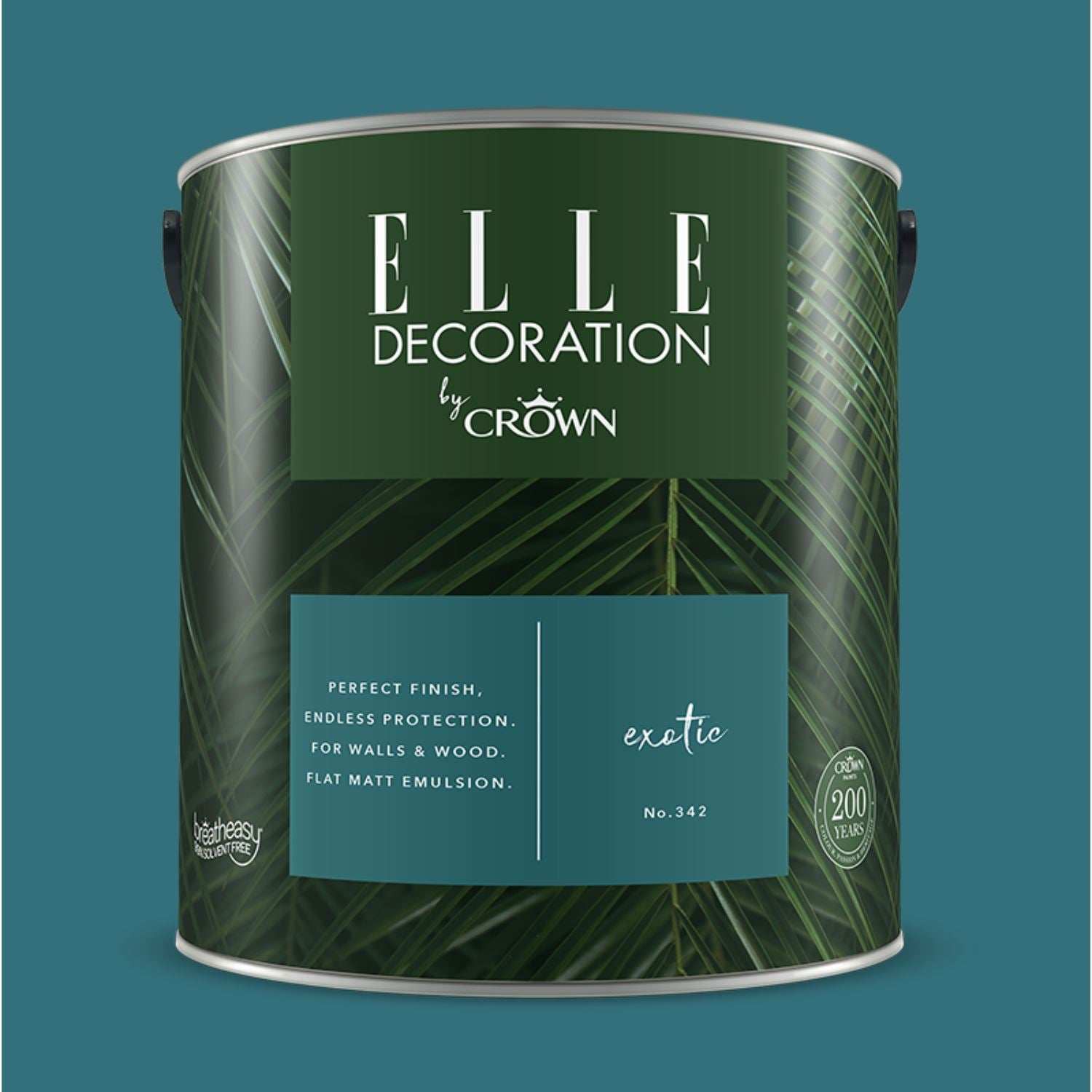 A premium, durable interior emulsion offering the perfect flat matt finish with endless protection for walls and woodwork. Available in 60 stunning shades. Each tin carries the quality hallmark of Crown Paints' unique Breatheasy® formulation and combines our British colour heritage with ELLE Decoration's world-leading command of sophistated design. Not only is this asthma and allergy friendly but it is also 200x more durable and scrubbable, making it a leading washable and wipeable paint in the premium market.