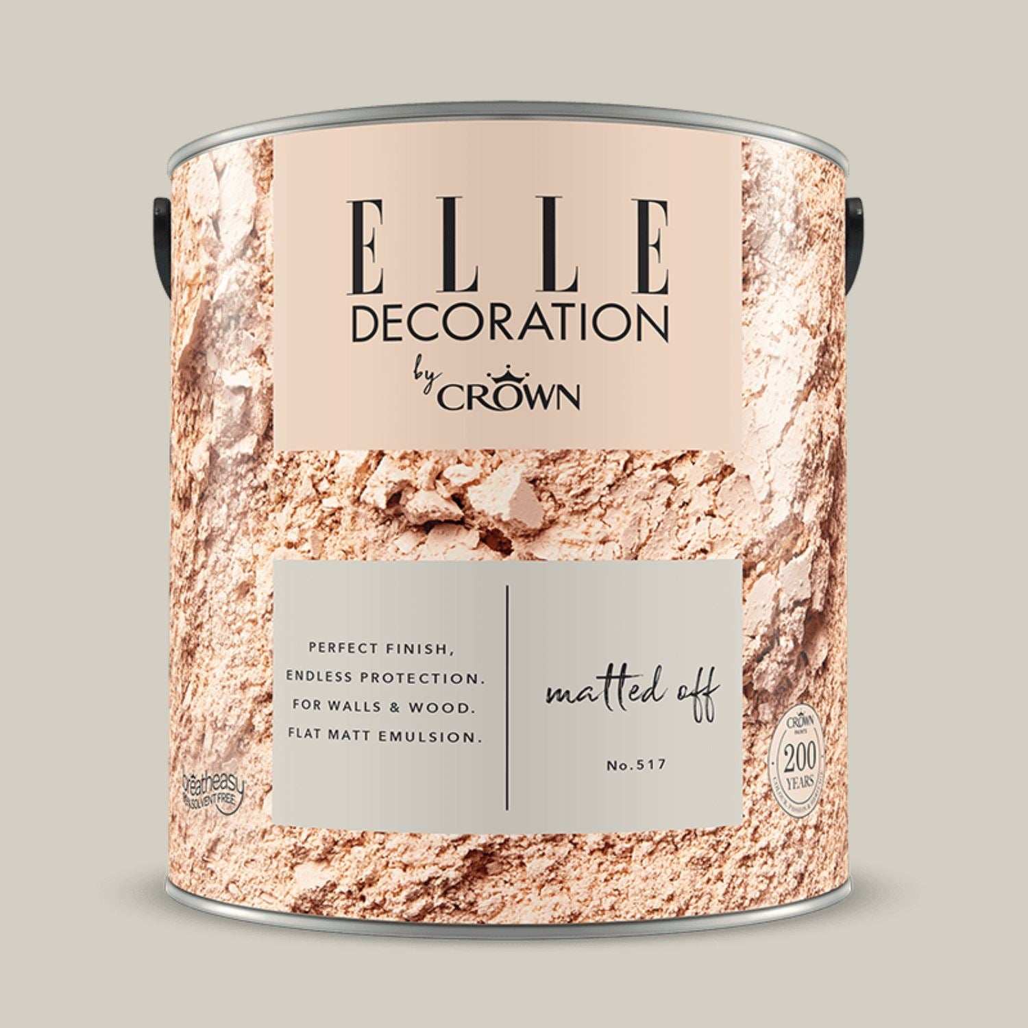 A premium, durable interior emulsion offering the perfect flat matt finish with endless protection for walls and woodwork. Available in 60 stunning shades. Each tin carries the quality hallmark of Crown Paints' unique Breatheasy® formulation and combines our British colour heritage with ELLE Decoration's world-leading command of sophistated design. Not only is this asthma and allergy friendly but it is also 200x more durable and scrubbable, making it a leading washable and wipeable paint in the premium market.