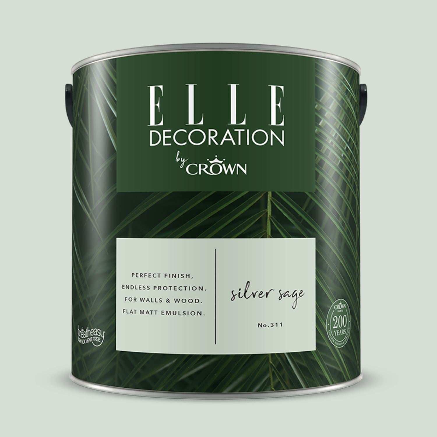 A premium, durable interior emulsion offering the perfect flat matt finish with endless protection for walls and woodwork. Available in 60 stunning shades. Each tin carries the quality hallmark of Crown Paints' unique Breatheasy® formulation and combines our British colour heritage with ELLE Decoration's world-leading command of sophistated design. Not only is this asthma and allergy friendly but it is also 200x more durable and scrubbable, making it a leading washable and wipeable paint in the premium market.
