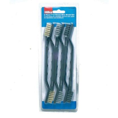 Cleaning brush set includes 2 each of brass, steel and nylon. Brass for cleaning, steel for rust and nylon for upholstery and dashboard.