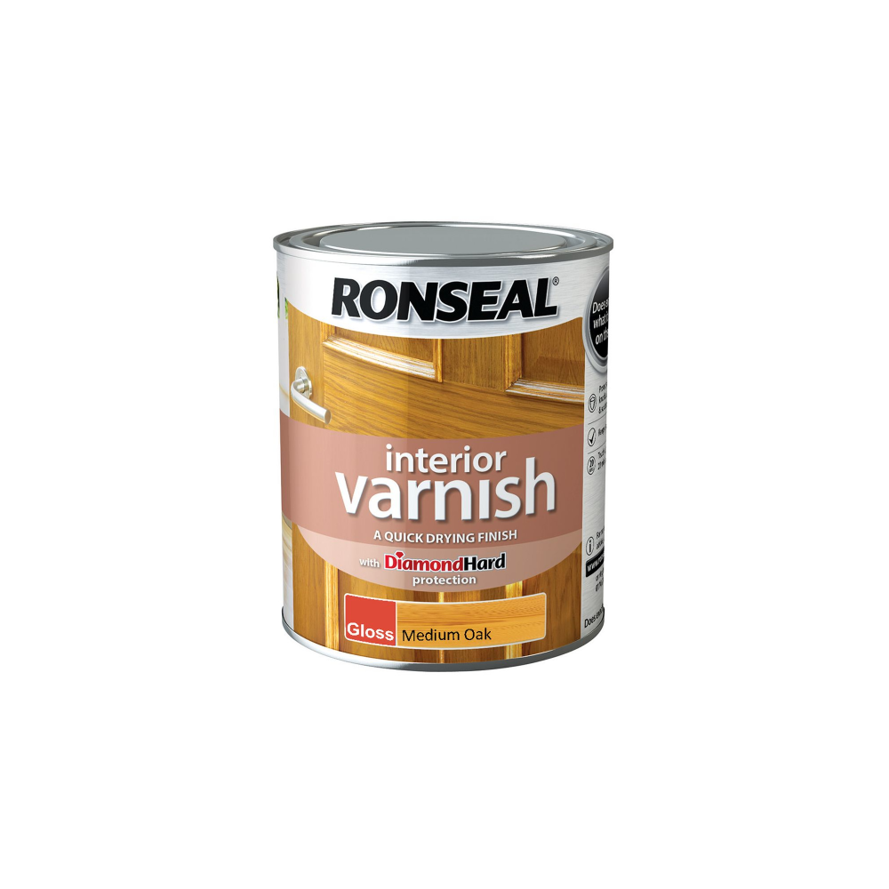 RONSEAL INTERIOR VARNISH GLOSS MEDIUM OAK 750ML