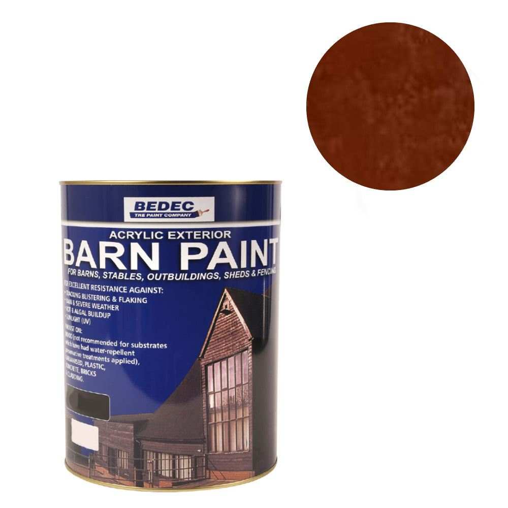 Bedec Barn Paint is a versatile, multi-surface, water based acrylic exterior paint offering excellent protection from cracking, flaking, blistering, rain, extreme weather, UV (sunlight), rot and algae. Use it on galvanised steel, plastic, concrete, brick, cladding and wood. Not for use on wood with water repellant preservatives applied. It performs on many substrates around farms, garden factories and houses, eg barns, stables, outbuildings, sheds, gates and fences. It's highly durable, with superb colour retention. Bedec Barn Paint can be applied to previously painted surfaces, even those coated with weathered bitumen, tar varnish or creosote, as long as there are no loose powdery deposits.