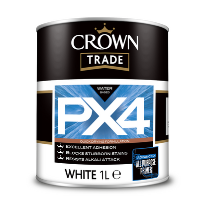 Crown Trade PX4 All Purpose Primer is a high-performance, solvent-based primer designed for challenging interior and exterior surfaces. This versatile primer offers exceptional adhesion to a wide range of tricky substrates, including aged gloss, uPVC, ceramic tiles, and more. It seals surfaces effectively, blocks stains, and provides a perfect foundation for subsequent topcoats, making it an essential choice for problematic areas.