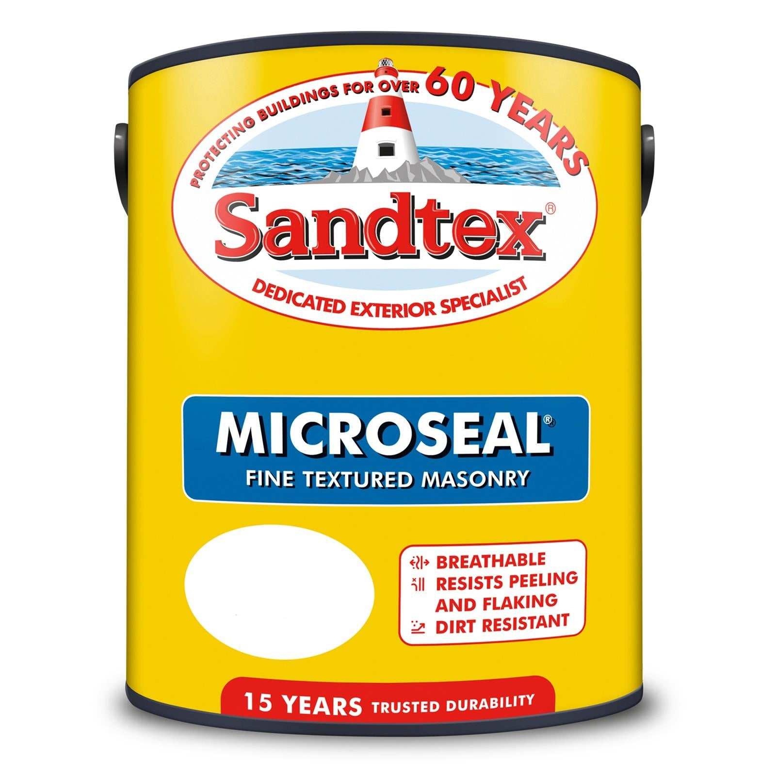 Sandtex Microseal formulation provides ultimate protection via its flexible coating which resists peeling, cracking and flaking. Its dirt resistant properties maintain the coating's aesthetic features, and offers the benefit of being rainproof in 1 hour so you can complete the job even if the weather forecast is not reliable.