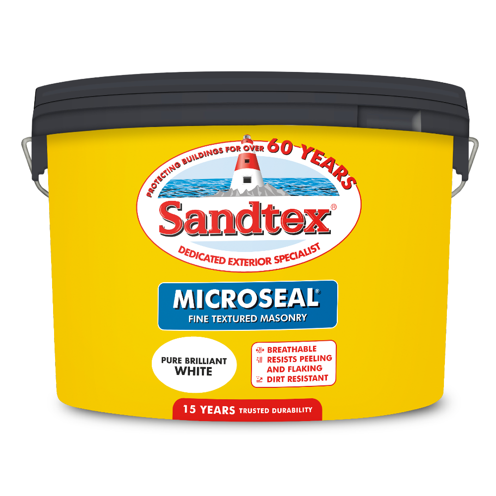 Sandtex Microseal formulation provides ultimate protection via its flexible coating which resists peeling, cracking and flaking. Its dirt resistant properties maintain the coating's aesthetic features, and offers the benefit of being rainproof in 1 hour so you can complete the job even if the weather forecast is not reliable.