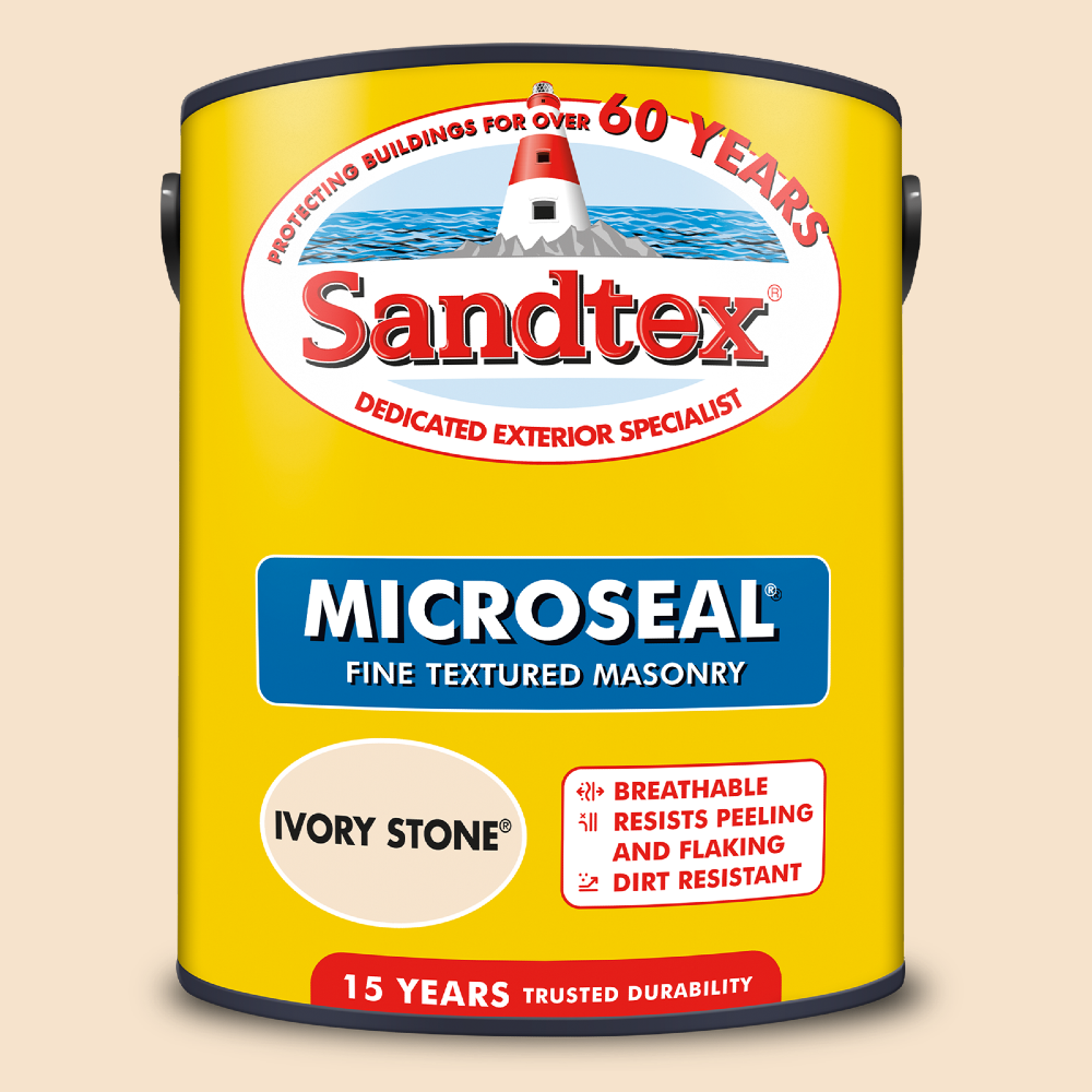 Sandtex Microseal formulation provides ultimate protection via its flexible coating which resists peeling, cracking and flaking. Its dirt resistant properties maintain the coating's aesthetic features, and offers the benefit of being rainproof in 1 hour so you can complete the job even if the weather forecast is not reliable.
