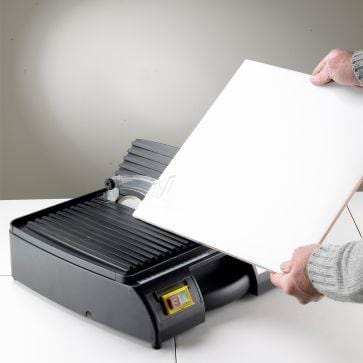 Compact portable diamond wheel tile cutter for cutting & mitring wall & floor ceramics & tiles. Extension table for larger tiles from 360-440mm Carry handle for easy transportation Self contained water reservoir