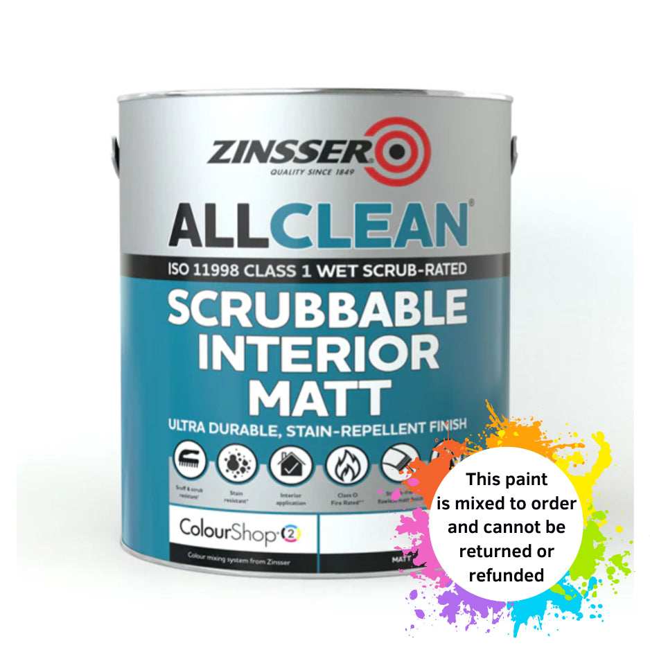 Zinsser AllClean® Matt is a high-performance, flat matt paint designed to keep your interior walls and ceilings looking pristine. This exceptionally durable and scrubbable finish offers flawless, even coverage and provides robust protection against scuffs and stains. Perfect for busy environments like homes, schools, and commercial buildings, AllClean® Matt is formulated to resist dirt pickup and withstand moisture, ensuring your painted surfaces stay fresher for longer.