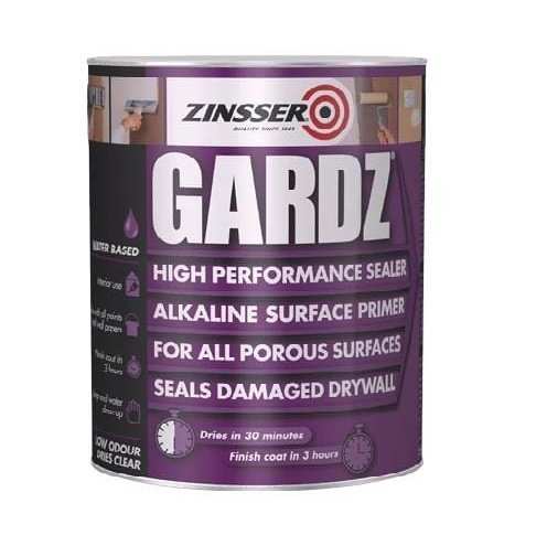 Zinsser GARDZ is a unique, clear, water-based acrylic resin sealer specifically designed for interior problem surfaces. It deeply penetrates and dries to a hard, moisture-resistant film that effectively seals and binds down porous, chalky, and crumbling materials. GARDZ is a must-have for preparing surfaces like damaged drywall, new drywall, plaster, cement, spackling, joint compound, calcimine, and uncoated wallpaper.