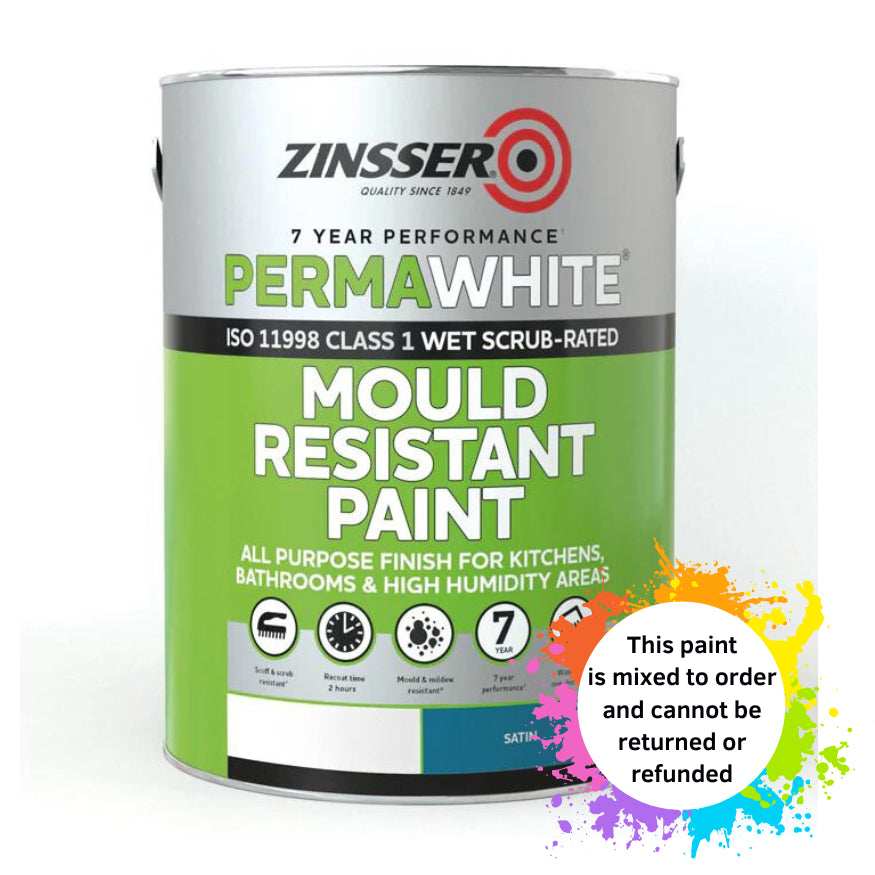 For high-moisture areas like bathrooms and kitchens, Zinsser PermaWhite® is the ultimate mould-resistant paint. This tough, scrubbable paint is specially formulated to combat mould and mildew in humid, poorly circulated spaces. Its durable film resists cracking, peeling, and blistering for up to 7 years, even bonding to glossy or solvent-based paints without sanding. PermaWhite® also seals drywall, cement block, and concrete. Available in a Matt finish for a durable low sheen, it ensures your high-humidity rooms stay looking fresh and clean.